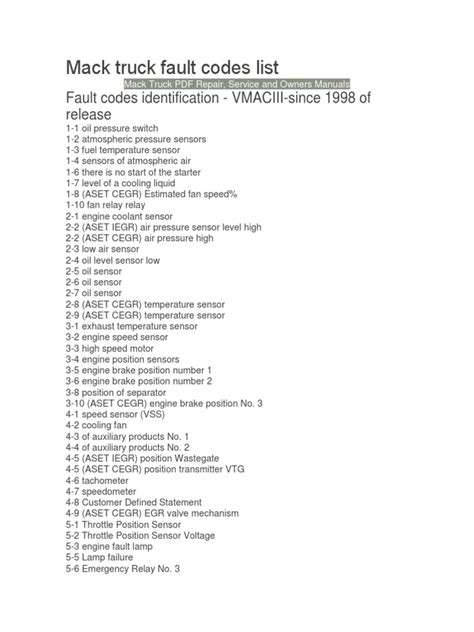 Online PDF Mack-truck-fault-code-list Paperback BookBoon